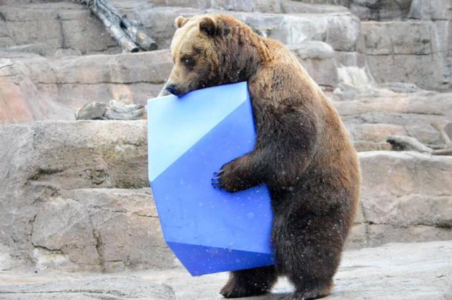 Introducing the Funny Float, the enrichment toy that will make your friends go bananas! This quirky float is shaped like a wobbly loaf of bread, making it nearly impossible for animals to hold on to. But that's what makes it so entertaining! Just toss it into the water and watch as the animals try to grab it, balance on it, or just stare at it in confusion. And guess what? Polar Bears are huge fans of this thing! Maybe it reminds them of an iceberg, who knows?