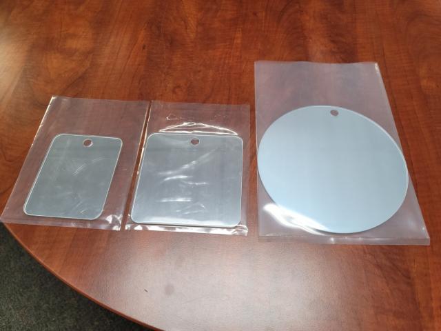 • These Disposable Mirrors are Polycarbonate, a very impact resistant material commonly used for eyeglasses, motorcycle windshields and vehicle headlights. As a mirror, they are more scratch resistant than Stainless Steel. While Stainless Steel is unbreakable, the reflective surface is unprotected and in direct contact with animals and cleaning rags, all of which degrade the reflectivity. With Polycarbonate Mirrors, the reflective surface is behind the clear surface.