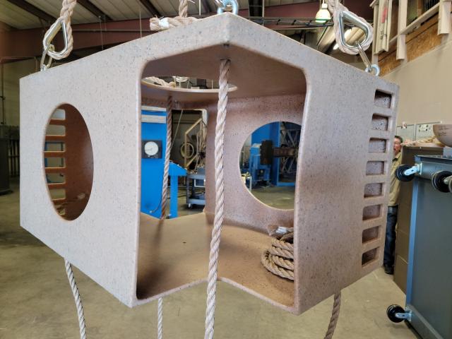 - At both ends of Rope Swing, finger holes available in the Ton of Fun wall allow animals to access the interior or top.